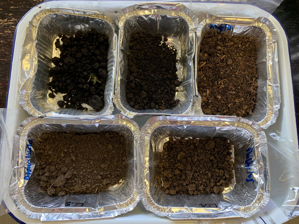 Here, the soil is weighed and some chemistry components are tested, including pH, organic matter content, total carbon, total nitrogen and some micronutrients/heavy metals.