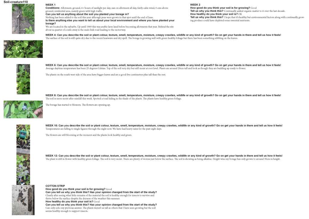 What did the soil diaries tell us? Each diary produced a lot of rich individual qualitative visual and textual data about the growing journey of borage in different locations, sites and conditions. The main aspect of this part of the study was to develop a more expanded view of wellbeing and nature connectedness than could potentially be recorded in the start and end surveys. Growers have produced over 820 diary entries, and they’re still coming in. Diaries have included excellent photographic records and detailed descriptions of the borage and soil and everyday things that growers noticed about the environment that their borage lives in.